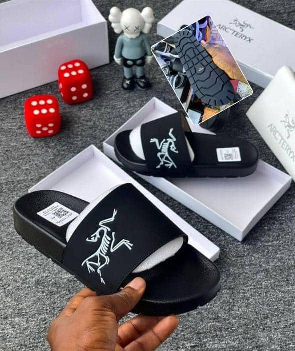 Level up your casual game with these black Arcteryx-inspired platform slides – thick soles meet iconic bird logo for premium technical-street flex! The matte black rubber footbed and exaggerated thick platform sole (deep geometric tread, 3–4 cm lift) deliver superior grip and modern height, while the wide upper strap showcases the bold raised/embossed white Arcteryx bird logo (classic leaping bird silhouette) for that unmistakable high-performance outdoor-luxury vibe. Cushioned insole, open-toe slip-on design, and durable EVA/rubber construction keep them lightweight, breathable, and water-friendly—perfect for Plumstead pairing with shorts/joggers/jeans/hoodies barefoot or with socks for streetwear, poolside, beach, gym-to-street, or everyday hype in mild February-to-summer weather.