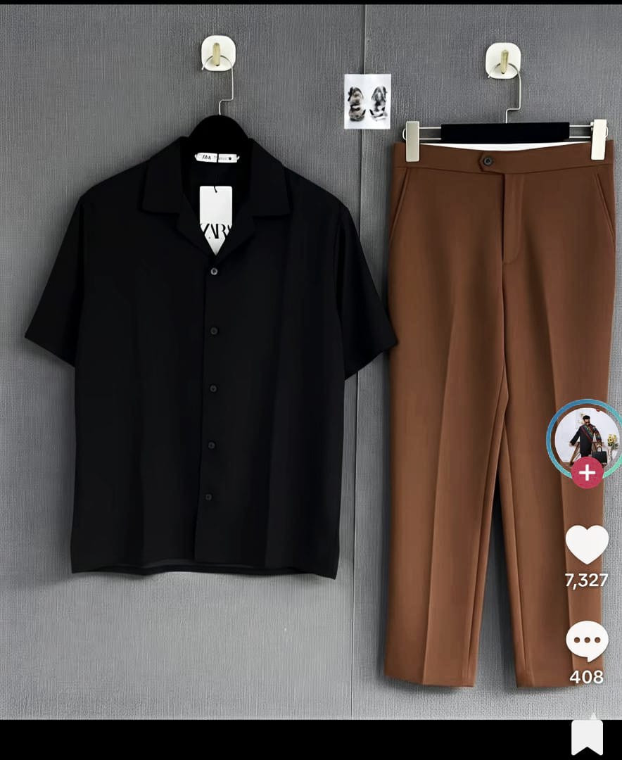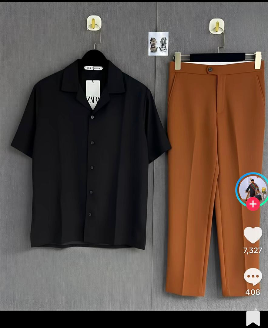 Elevate your everyday look with this sleek 2-piece Zara-inspired co-ord set – oversized black open-collar shirt + high-waisted burnt orange straight-leg trousers for timeless quiet luxury! The black shirt offers a relaxed boxy fit with camp/revere collar, full button-front, dropped shoulders, longer untucked length, and lightweight smooth fabric with subtle sheen – effortless to layer or wear open. The terracotta pants feature high-rise tailored waist, belt loops, single-button/zip closure, front pockets, pressed crease, and slim-through-thigh straight-leg cut – polished yet comfortable for all-day wear. Perfect for Plumstead's mild February weather – pair open shirt over tee with boots or buttoned with coat for minimalist streetwear, office-casual, or elevated everyday style.